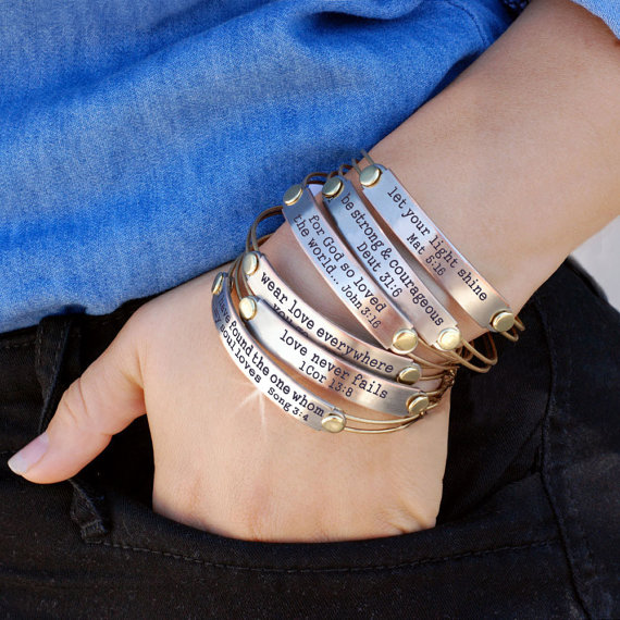 It’s hard to choose between all these beautiful options, although my personal favorite is “above all else, guard your heart ~ Prov. 4:23”. Each bracelet is handmade of earthy burnished silver and warm bronze metals. Attractively packaged and ready to give. Includes free lifetime warranty card and tags. Available—>HERE